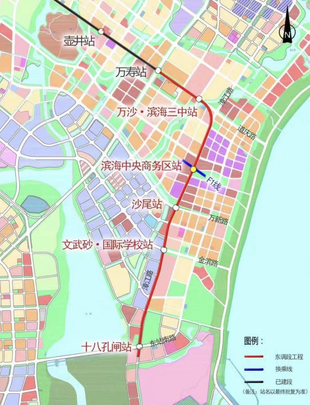 福州地铁6号线东调段工程起于长乐滨海新城万寿站(不含),终于十八孔闸站,线路全长5.55km,均采用地下敷设。共设4站(含换乘站2座)5区间。该线采用与6号线一致的地铁B型车,最高运营速度100公里/小时。