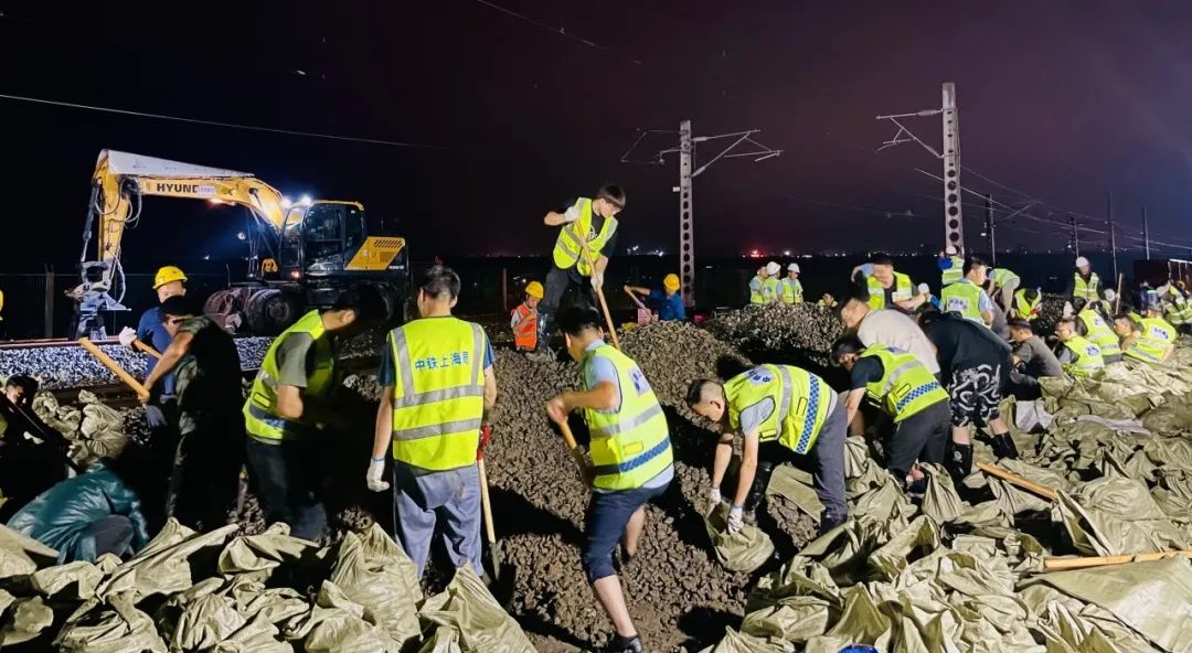 中铁上海局西延铁路项目部迅速启动应急救援机制,快速筹集抢险物资、设备,并成立现场抢险、物资筹备、设备协调、后勤保障4个工作组。抢险队伍第一时间就位,迅速组织抢险人员与大型机械设备投入抢险作业。完成耀州站抢险任务后,救援队伍再次接到对咸铜铁路富平境内梅家坪站路基滑坡位置进行处理的抢险任务,指挥小组放弃休息,迅速组织抢险救援队伍、机械设备及保障物资连夜赶赴滑坡现场,并调集西安地铁10号线项目部40余人,白加黑冒雨进行抢修作业。