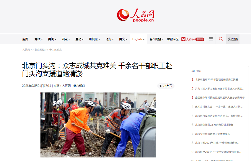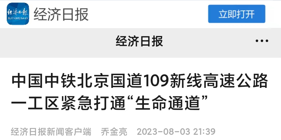 连日来,强降雨造成北京市门头沟区遭受严重灾害。中铁一局二公司承建的北京国道109新线高速公路一工区的建设者化身抢险志愿者,全力配合属地开展抢险救灾工作,第一时间打通“生命通道”。