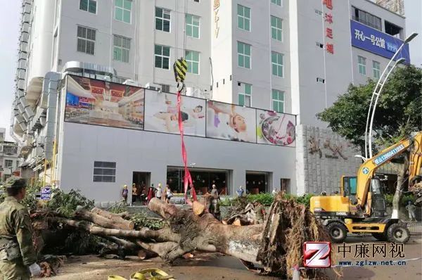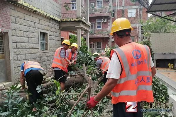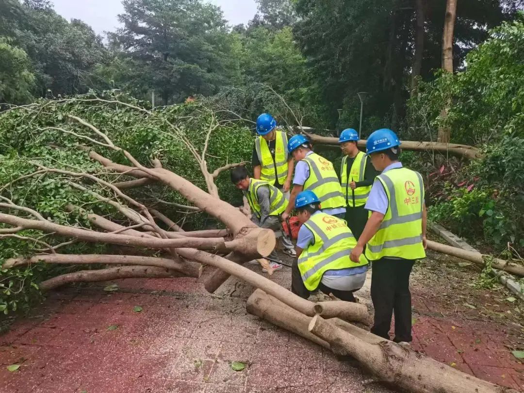 图为项目员工在泉州鲤城区清理倾倒的树木