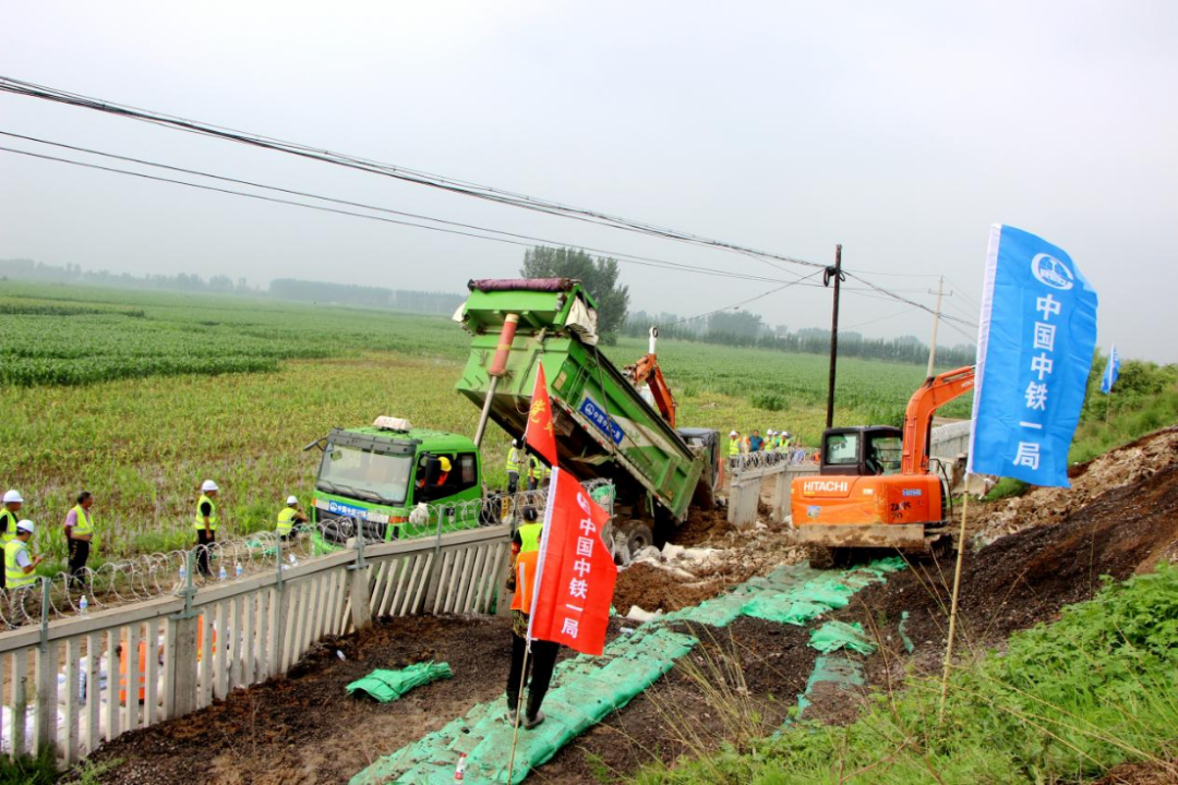 8月1日,位于河北省廊坊市文安县境的内京九铁路受台风影响,导致路基受损、边坡塌陷,列车通行安全面临极大风险。中铁一局六公司迅速组织雄商高铁一标项目、启动区E03一标项目成立救援突击队,紧急集结80余名抢险人员、20余台机械设备,火速赶赴抢险现场,加快修复受损线路。目前,经过抗洪抢险队员连续10小时作业,险情已经在可控范围内。