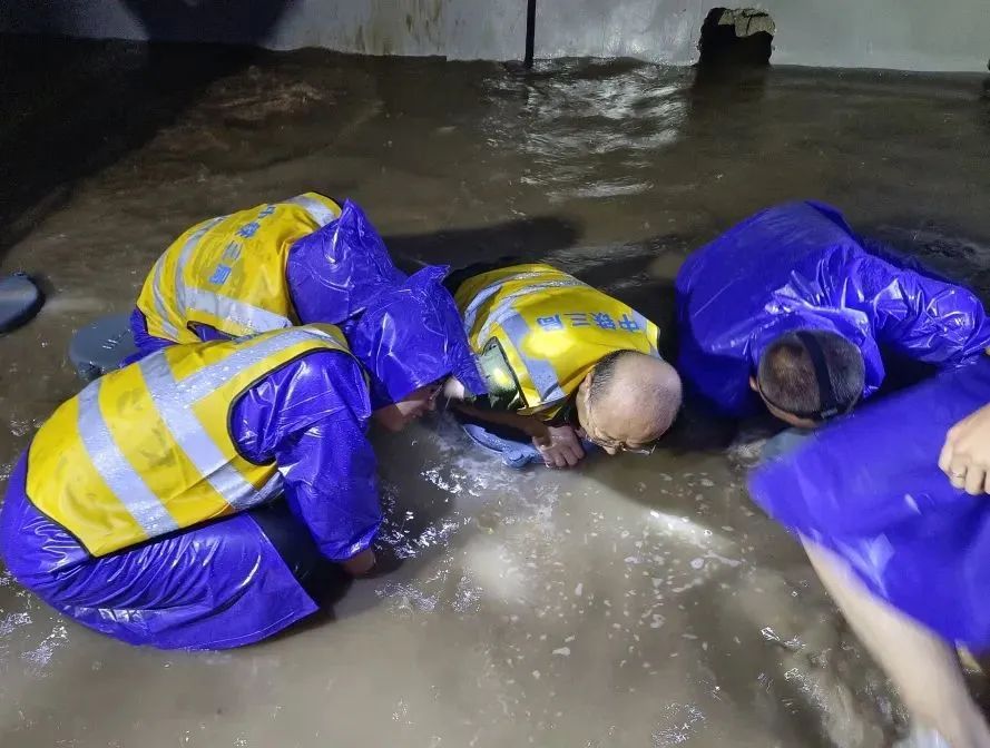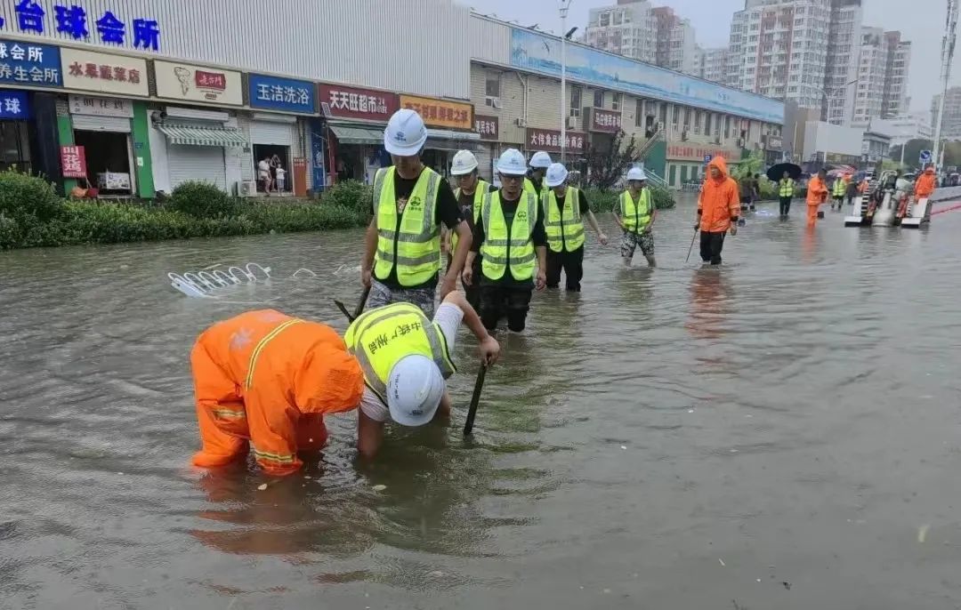 连续的强降雨导致莲池区部分市政道路雨污管道雨水倒灌,井内雨水无法及时排出造成内涝,其中最为严重的军校广场街及东苑街等道路因地势低洼,周边的雨水都汇聚于此,无法排出,最深处已没过膝盖。项目部紧急部署、合理安排,领导班子坚守现场、靠前指挥,组织抢险人员68人,调派抢险运输车辆9台,装载机2台,挖机1台,抢险工具若干,协助保定市城市综合行政执法局抽排市政道路及污水井、雨水井内积水,清除阻水障碍,抢险人员冒雨连续奋战20个小时,顺利完成抢险任务,恢复交通通行,有力保障了人民群众的生命财产安全。