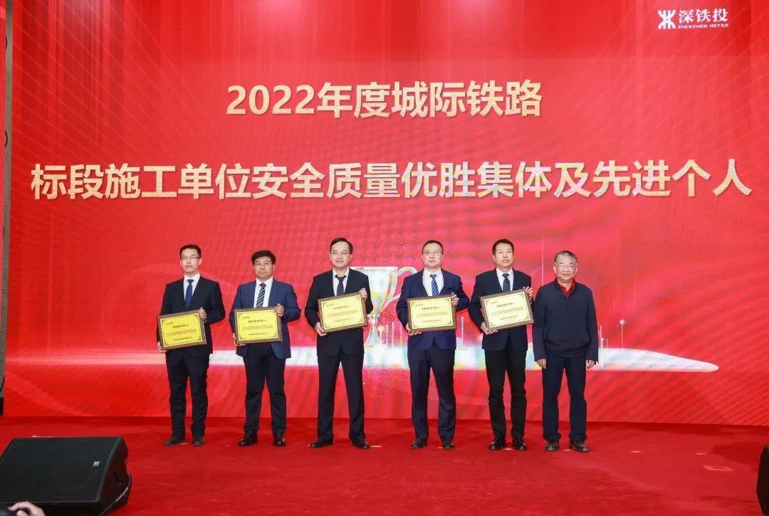 会上,深圳铁投对2022年度突出贡献的参建单位和个人进行表彰,中铁南方获评为2022年城际铁路“综合优胜合同单位”,深大城际2标项目获评为“综合优胜标段”“安全质量优胜标段”,中铁南方廖政权获评为“杰出管理者”、周凯获评为“优秀项目管理者”、陈明获评为“安全质量优秀管理者”,所牵头施工管理的各工区项目及有关负责人相继斩获多项综合考核及安全质量管理荣誉。