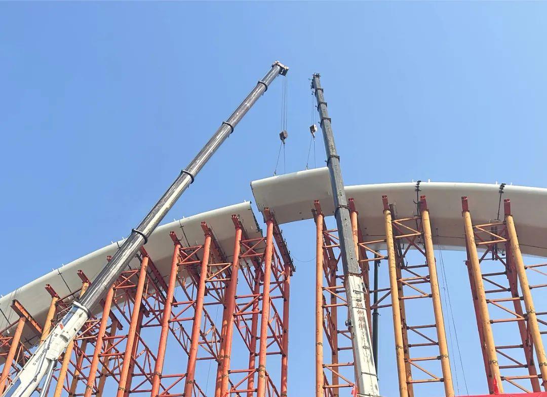 郑州新建彩虹桥主桥拱肋顺利合龙
