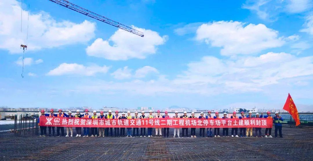 12月24日,随着最后一块顶板混凝土浇筑完成,由中铁南方投资集团、中铁八局集团承建的深圳市城市轨道交通11号线二期工程停车场工区主体结构顺利封顶,提前6天完成了节点工期目标,“决战决胜四季度”劳动竞赛取得了丰硕成果。