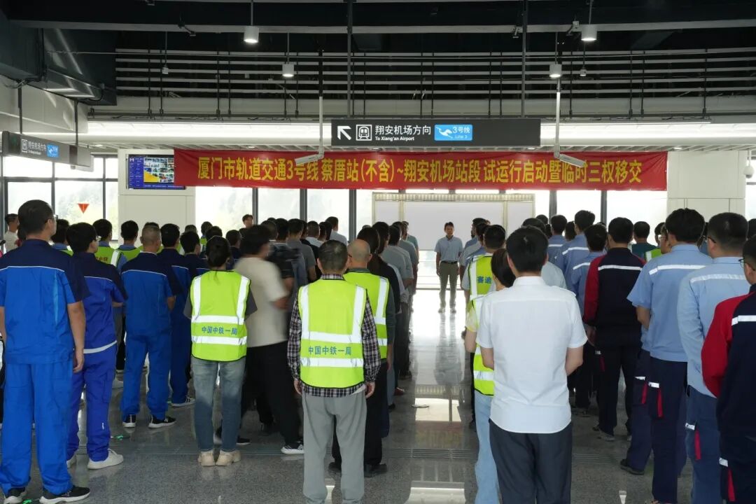 11月15日,厦门地铁3号线蔡厝站(不含)-翔安机场站段试运行启动暨临时三权移交仪式在阳塘站顺利举行,标志着该段线路正式迈入试运行阶段。