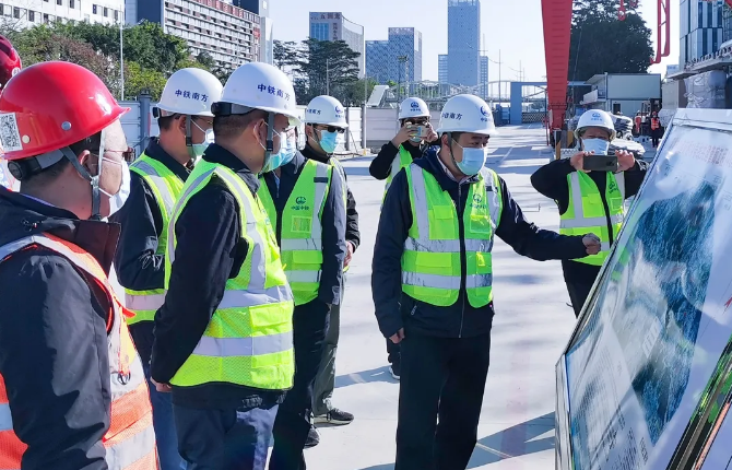 2021年1月1日上午,新年第一天,中铁南方总经理王伟带队深入深圳地铁14号线共建管廊项目,看望慰问节日期间坚守施工一线的广大员工,检查节日期间疫情防控和安全生产工作。中铁南方安全总监黄鑫琢、工管中心主任刘学勤、深圳项目集群指挥部副指挥长洪源及项目联合体有关负责人参加检查。