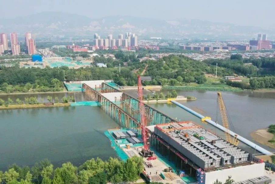 河汾一路跨汾河大桥钢箱梁滑移作业顺利启动