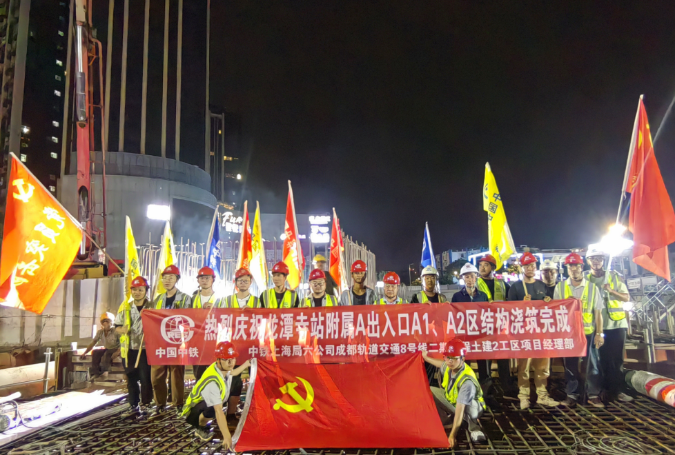 面对龙潭寺站施工难度大、施工区域管线复杂、交通导改及管线迁改困难、高环保要求、“大运会”召开等诸多影响因素,项目部全局筹划、精心组织、科学部署,全体员工不畏困难、艰苦奋斗、昼夜奋战,安全、优质、高效的完成一系列工期节点,为成都轨道交通8号线二期工程的全线贯通打下了坚实的基础。