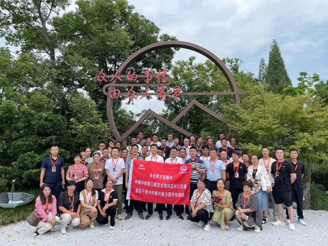 为贯彻落实党的二十大有关全面推进乡村振兴决策部署,以智力帮扶、组织振兴推动学习贯彻习近平新时代中国特色社会主义思想主题教育走深走实,8月7日至8月11日,中国中铁第三期定点帮扶基层村党支部书记培训班在浙江杭州成功举办,公司定点帮扶地区湖南省汝城县、桂东县、山西省保德县以及西藏卡若区共71名挂职干部及基层村党支部书记参加培训。