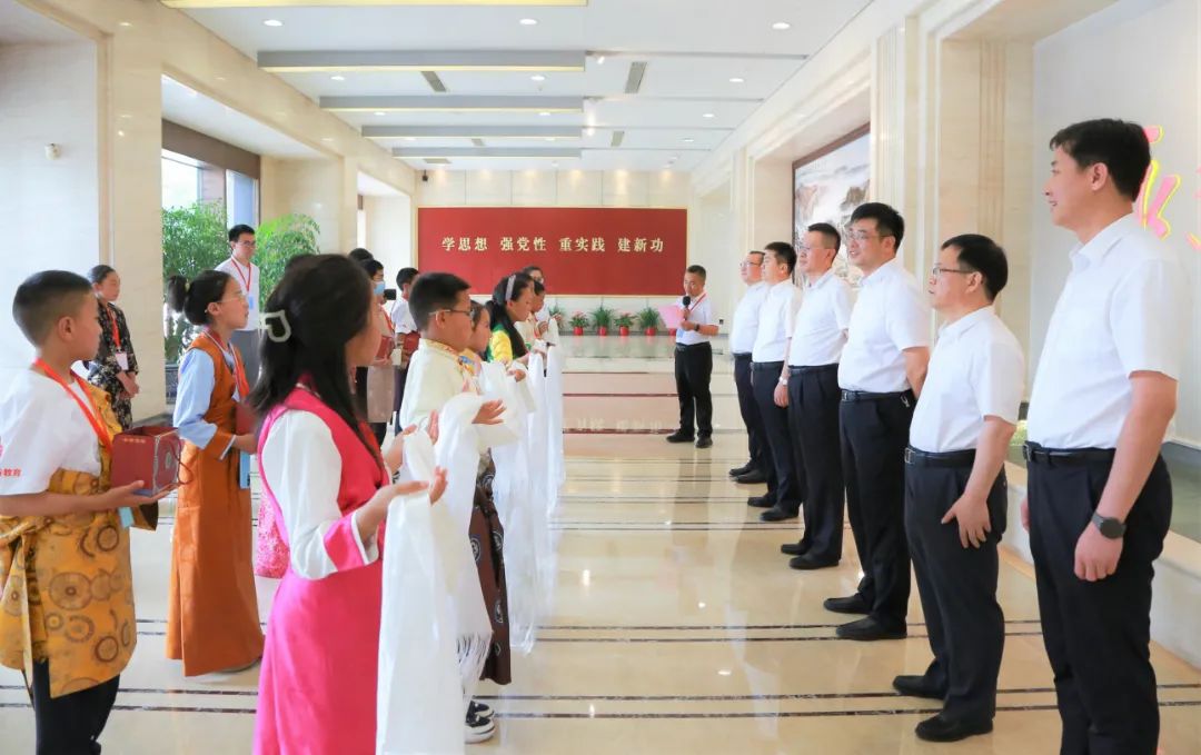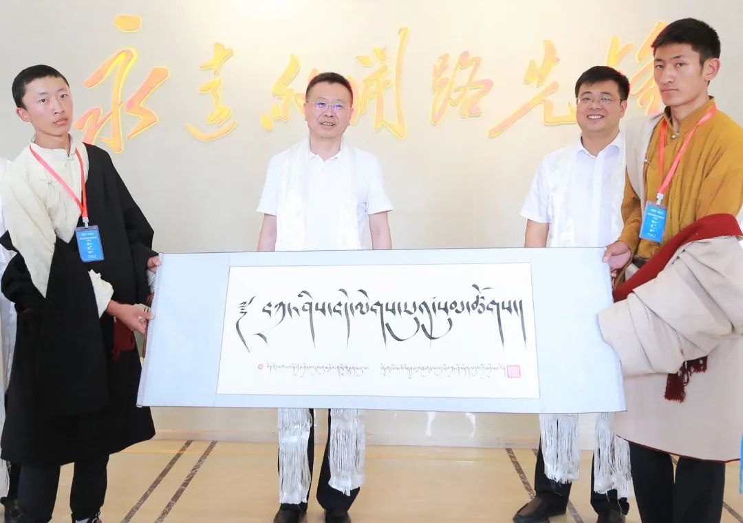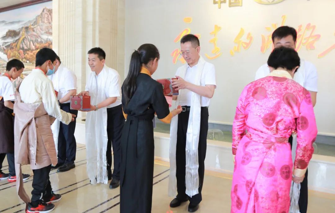 活动期间,优秀学生代表向与会领导敬献哈达,并互赠文创纪念品。