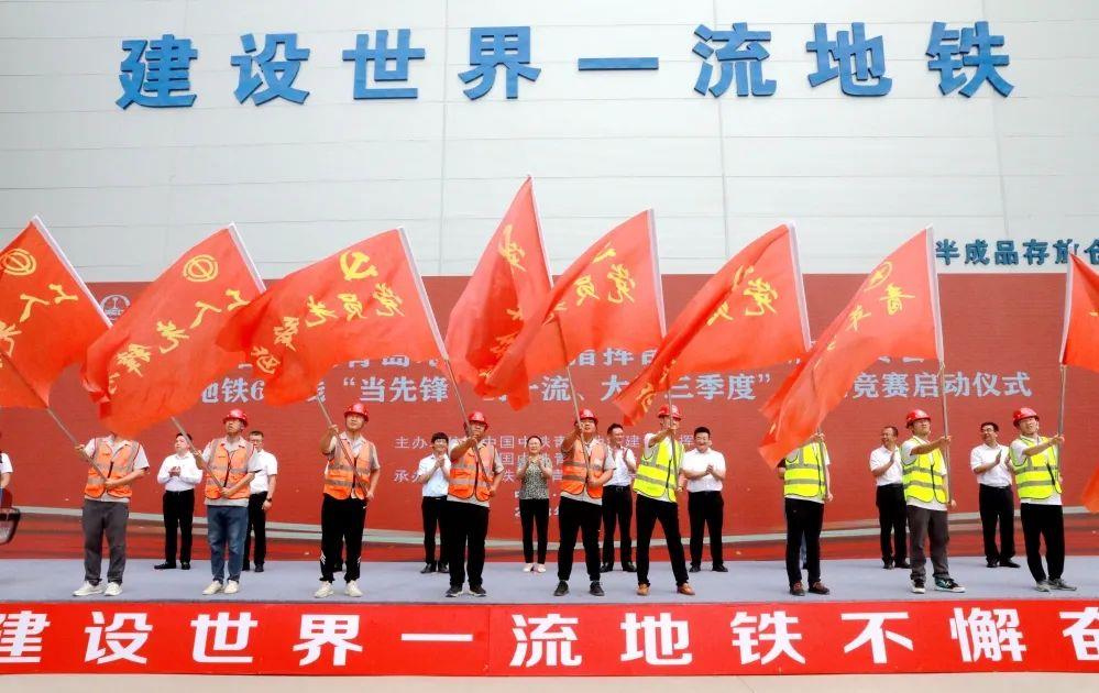 7月14日,中国中铁青岛地铁建设指挥部党建品牌宣贯会暨青岛地铁6号线“当先锋、创一流、大干三季度”劳动竞赛启动仪式在青岛地铁6号线二期灵山湾路站举行。