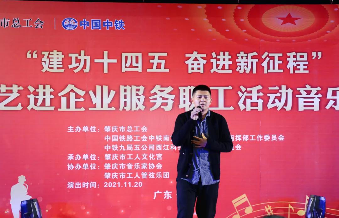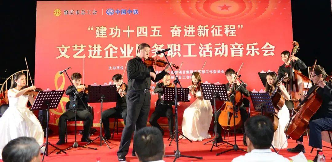 活动当天,还在项目施工一线举行了文艺进企业服务职工活动音乐会,肇庆市工人文化宫、市音乐家协会、市工人管弦乐团及中铁九局项目部职工同台为奋战在一线的建设者们送上丰富多彩的节目。演出在独唱《我爱你中国》拉开了序幕,歌曲演唱、弦乐演奏精彩节目轮番上演。此外,音乐会还根据项目的实际特点,编排了由职工自导自演的小品、相声节目,通过惟妙惟肖的表演和场景布排向大家展示了中铁西江国际未来科技城的独特魅力和产业发展价值,彰显了中铁谋求产业变革,促进地方高质量发展的美好愿景。