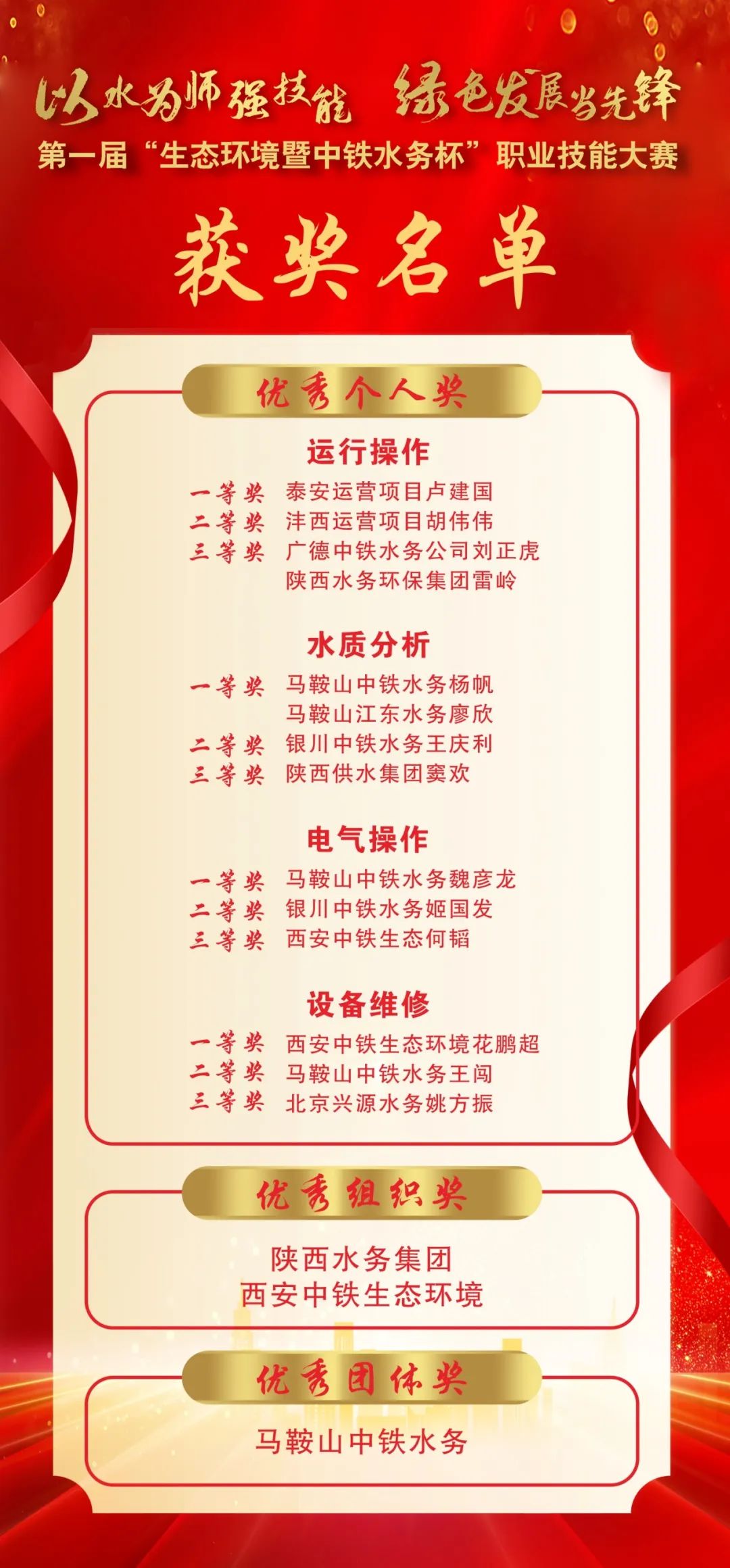 经过激烈的角逐,大赛在运行操作、水质分析、电气操作、设备维修4个工种中,评出个人一、二、三等奖14名,评出2个优秀组织奖及1个优秀团队奖。
