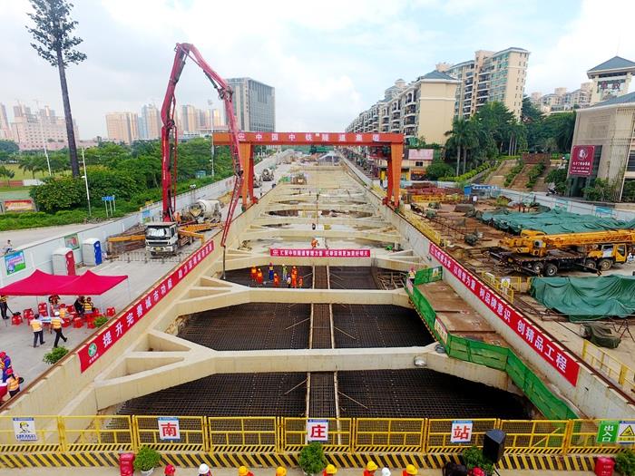 9月6日上午,随着最后一方混凝土浇筑完成,深圳地铁6号线南庄站主体结构顺利完成封顶,成为6号线一期首个封顶的地下车站。