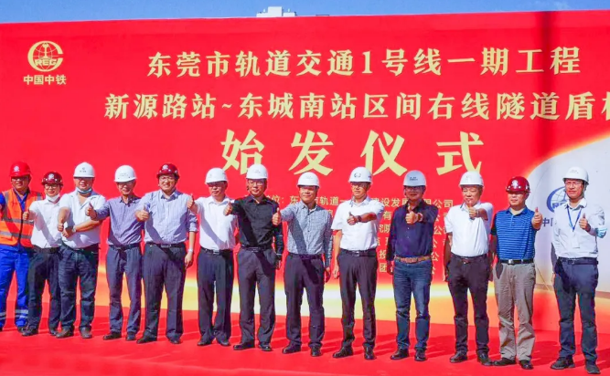 东莞轨道交通一号线建设发展公司,中铁南方东莞项目集群指挥部、中铁隧道局相关负责人参加了盾构始发活动,北京勘测院、中铁四院、广东重工、中铁二院等相关部门负责人以及参建代表100余人共同见证“东新1号”盾构机始发。
