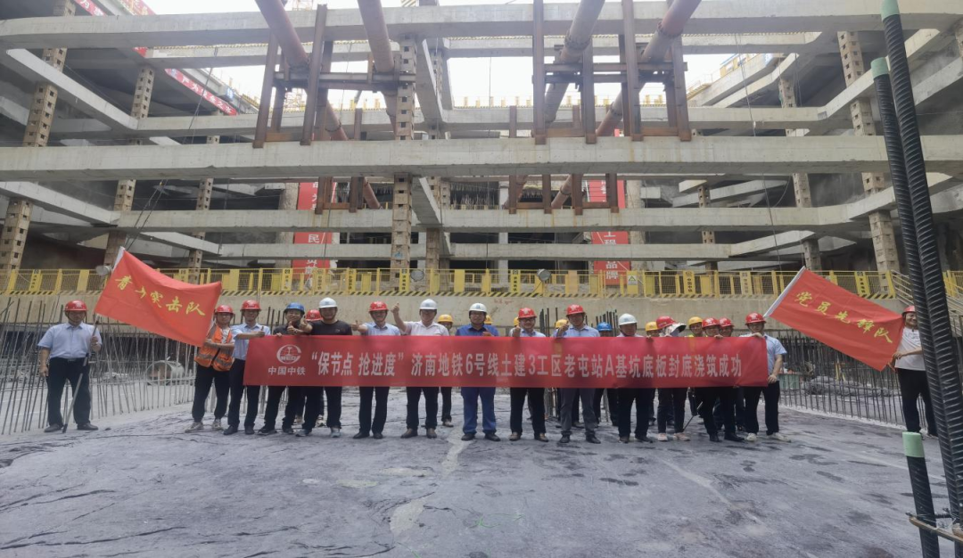 济南地铁6号线土建3工区老屯站A基坑底板封底浇筑成功