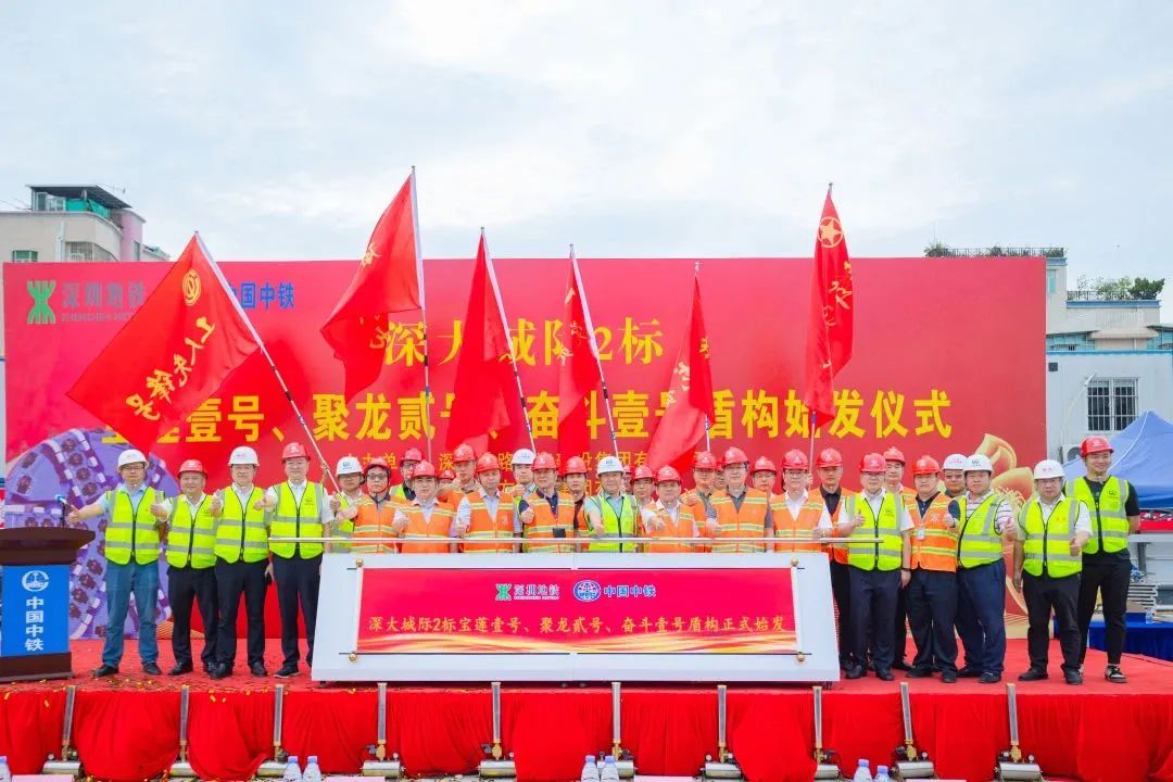 近日,由深圳铁投建设管理,中铁南方投资+施工总承包,中铁四局、五局、广州局承建的深大城际2标三台盾构“宝莲壹号”“聚龙贰号”“奋斗壹号”同日始发,项目盾构施工按下“加速键”。