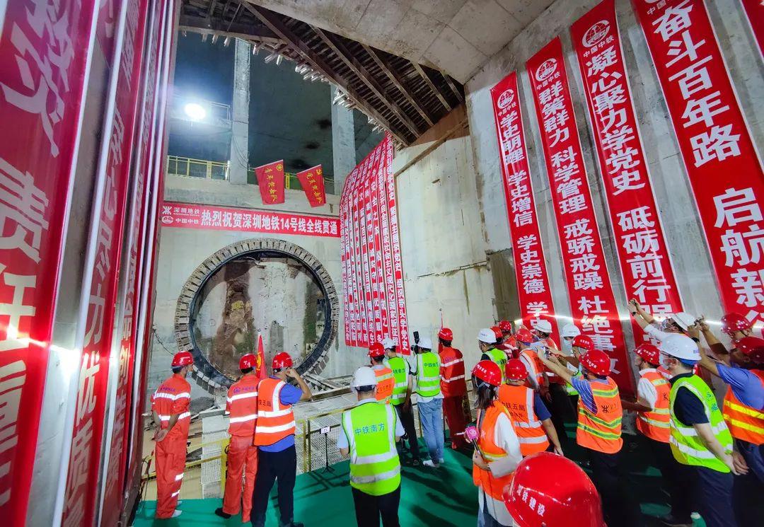 深圳地铁14号线是深圳东部首条地铁快线,设计时速120公里/小时,全长50.34公里,为全地下线路,其中21个盾构区间总长90公里,共投入49台盾构机,自2019年5月6日首台盾构开始推进,共始发60台次,历时28个月完成了全线区间盾构贯通,这是深圳目前在建轨道交通线路最长、投入盾构机数量最多、始发次数最多的轨道交通线路。