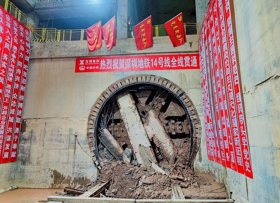 9月3日23时28分,随着盾构机刀盘的隆隆转动,中国中铁“匠心一号”盾构机从深圳地铁14号线大运站接收端破壁而出,标志着深圳轨道交通四期工程最长线路——深圳地铁14号线区间隧道全线贯通,工程建设取得重大里程碑进展。
