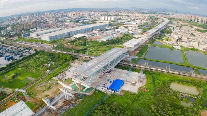 8月31日凌晨,经过112分钟连续紧张施工,由中铁十局承建的莞番高速上跨广深铁路主桥顺利完成逆时针81.1°转体,为莞番高速三期工程如期完工通车奠定了坚实基础。莞番高速上跨广深城际铁路桥为双层公路转体桥,重量2.9万吨,双层一次转体,为国内首例。莞番高速全长约64.48公里,设计时速100公里,是广东出省大通道广龙高速公路的重要组成部分,全线建成通车后,将成为珠三角区域又一条重要的东西向大通道,对提高粤港澳大湾区的互联互通水平具有重大现实意义。
