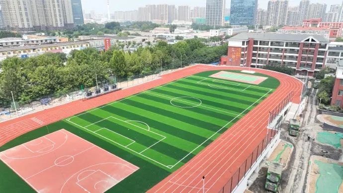 9月1日,由中铁十局承建济南高新区奥体中路学校改扩建工程正式完工。学校新建成的风雨操场采用架空屋面运动场设计,分为室外和室内两大区域,露天顶层为足球场、塑胶跑道操场、排球场及篮球场;室内为下沉篮球场和塑胶跑道,之间还有可容纳上百人观看的坐席台,遇雨雪天气时可在室内场地进行运动锻炼,有效解决了特殊天气无法开展体育运动的困扰。