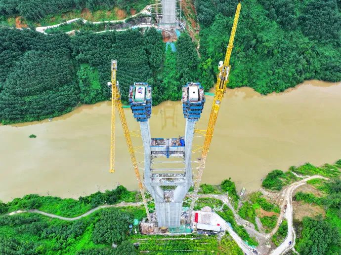 8月27日,历时三年的建设,由中铁开投、中铁二局负责施工的勐绿高速李仙江特大桥索塔成功封顶,为全线顺利通车奠定坚实基础。李仙江特大桥全长1112米,为三跨钢混组合梁花瓶形双塔斜拉桥,在云南省同类型桥梁中,索塔高度第一,主跨跨度第一,并且是勐绿高速全线第一控制性工程,为全国深切河谷山区高墩大跨度桥梁施工积累了宝贵经验。勐绿高速是云南省高速公路网的重要组成部分,连接祖国边境红河州、普洱市、西双版纳州,服务中国磨憨、勐康国际口岸城市建设,建成后将起到“襟带省域,沿边西南,辐射国门内外”的重要作用,是一条推动沿线少数民族加速奔向美好生活的致富和谐之路。