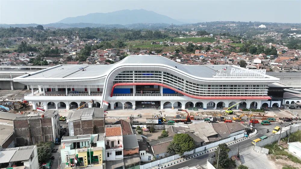 中国中铁支援建设的帕达拉朗车站位于西爪哇省万隆市帕达拉朗地区,站房建筑面积为9833平方米,设2台4线,可容纳1000人同时候车,高峰每小时发送量为2300人,是全线唯一一座与既有铁路进行换乘的车站,在此可与印尼普速铁路互联互通。车站设计突出“万隆门户,换乘枢纽”的功能,建筑采用曲线屋面和流线型设计,立面采用玻璃门洞设计,彰显速度感与科技感,象征着科技新城的新起点。从帕达拉朗乘汽车前往规划的科技新城,仅需5分钟。