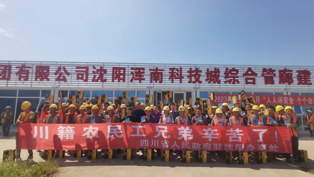 8月25日,四川省人民政府驻沈阳办事处联合中铁二局四公司沈阳综合管廊项目部开展企地共建慰问川籍农民工活动,为项目现场100名川籍农民工送来了农民工维权手册以及慰问品。