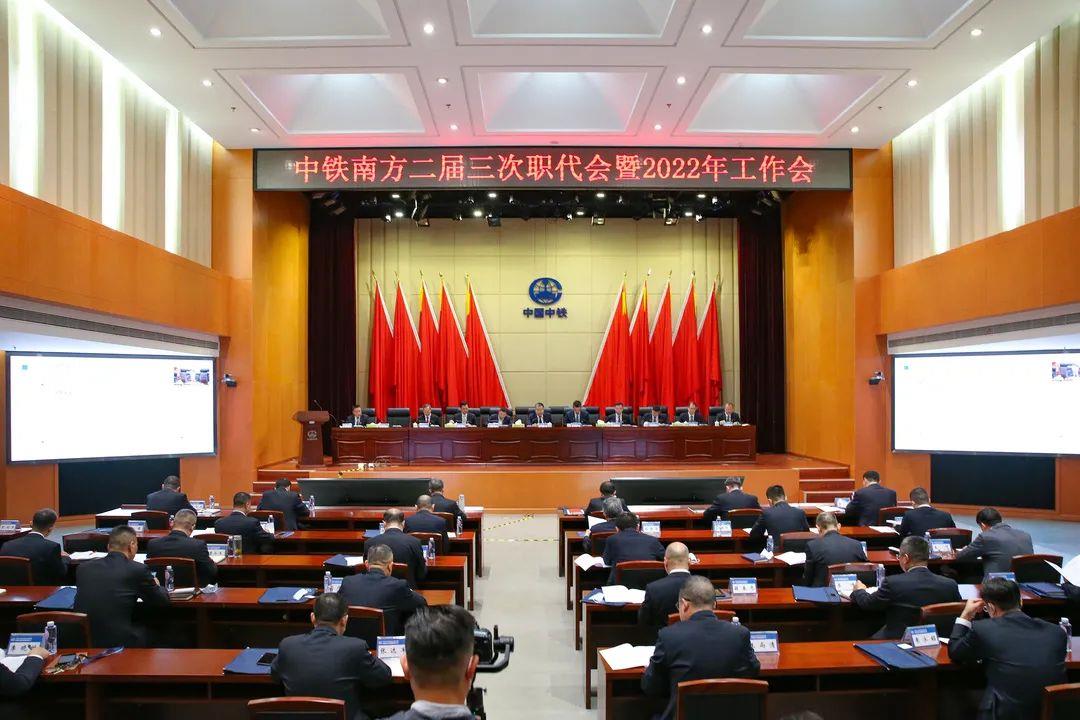 2022年1月25日,中铁南方二届三次职代会暨2022年工作会在深召开。会议以习近平新时代中国特色社会主义思想为指导,深入学习贯彻党的十九届六中全会精神和中央经济工作会议精神,认真落实股份公司“两会”部署,全面回顾总结中铁南方2021年各项工作,分析研判形势任务,安排部署2022年工作重点任务,动员全体员工担当作为,真抓实干,勇毅前行,用实干笃行谱写企业高质量发展新篇章,以优异成绩迎接党的二十大胜利召开。