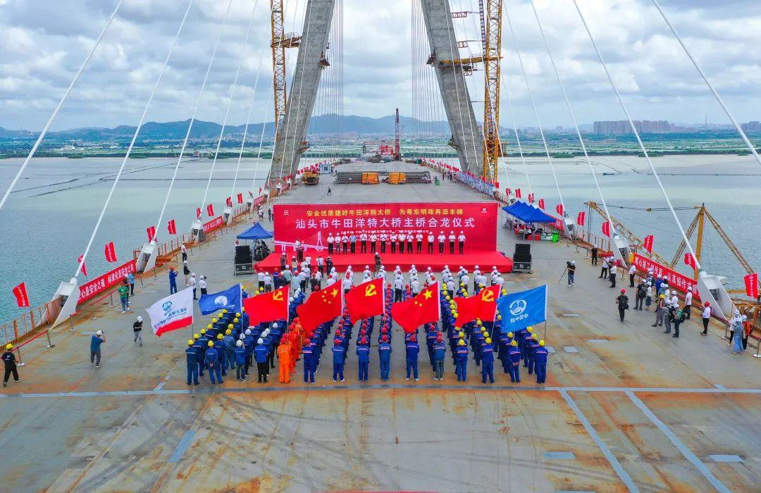 2022年6月30日,随着最后一节钢桁梁与两边钢桁梁精准连接, 由中铁南方投资集团牵头与广东联泰集团共同投资建设,中铁大桥局承建的汕头市牛田洋快速通道——广东汕头牛田洋公轨共建特大桥主桥成功合龙,标志着汕头牛田洋快速通道关键控制性节点顺利完成,为大桥后续桥面及附属设施施工奠定了坚实基础。