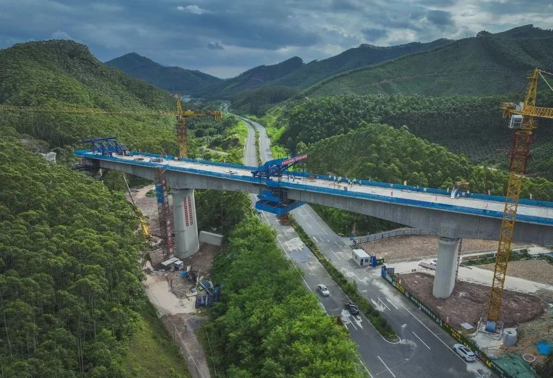 珠肇高铁全线首座连续梁--跨茶山公路特大桥连续梁顺利合龙