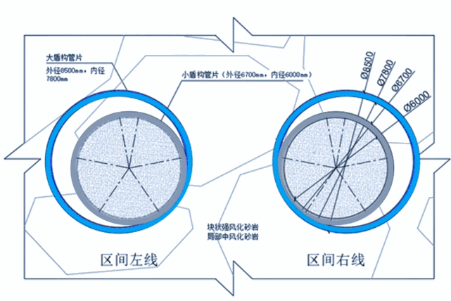▲大盾构扩挖小盾构示意图
