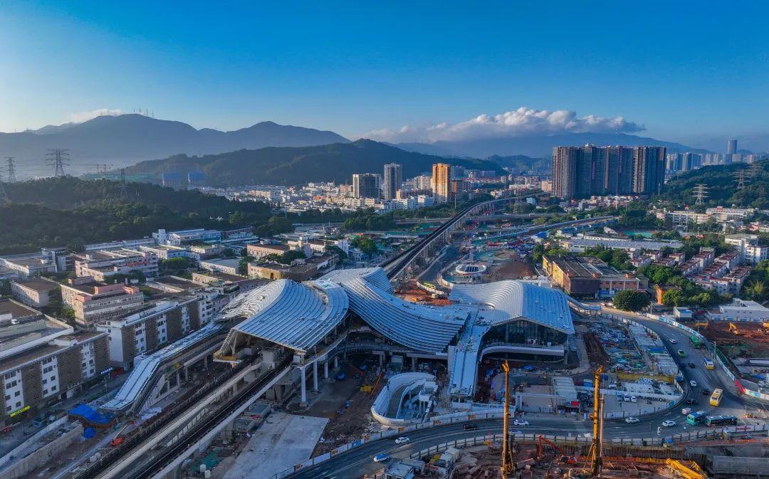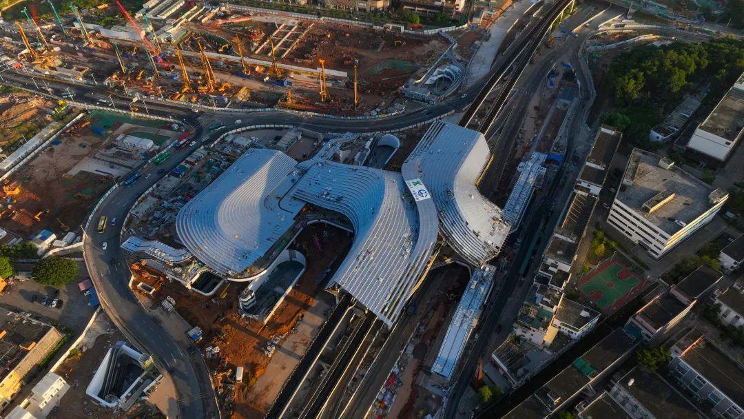 龙岗区的大运城市综合交通枢纽体量大,地上钢结构雨棚“湾区之舞”造型复杂,据介绍,该枢纽工程被业内称为“一大”“二高”“三难”“四复杂”项目。