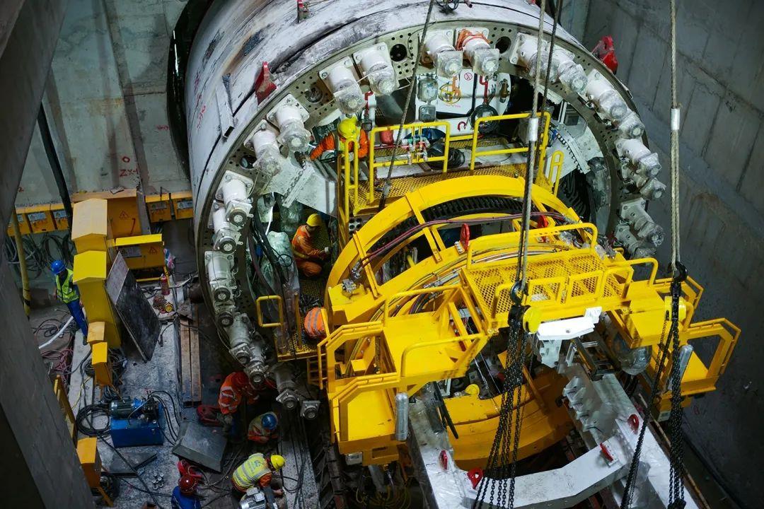 时间紧、任务重,参建方还面临着用地手续办理程序复杂和前期工程工作量大等难题,为按时保质保量完成任务,中国中铁联合深铁集团,利用“先隧后站”的施工方案破解难题。“我们设计并运用了大盾构扩挖小盾构成站技术,即采用小盾构先行大盾构切削小盾构玻璃纤维筋管片施工工法。相比传统暗挖工法,这种方法机械化程度和安全性能更高,成本低、速度快,对周边环境的影响更小。”中国中铁负责人介绍。这是该技术在国内首次应用于地铁施工,填补了国内盾构施工领域的空白。