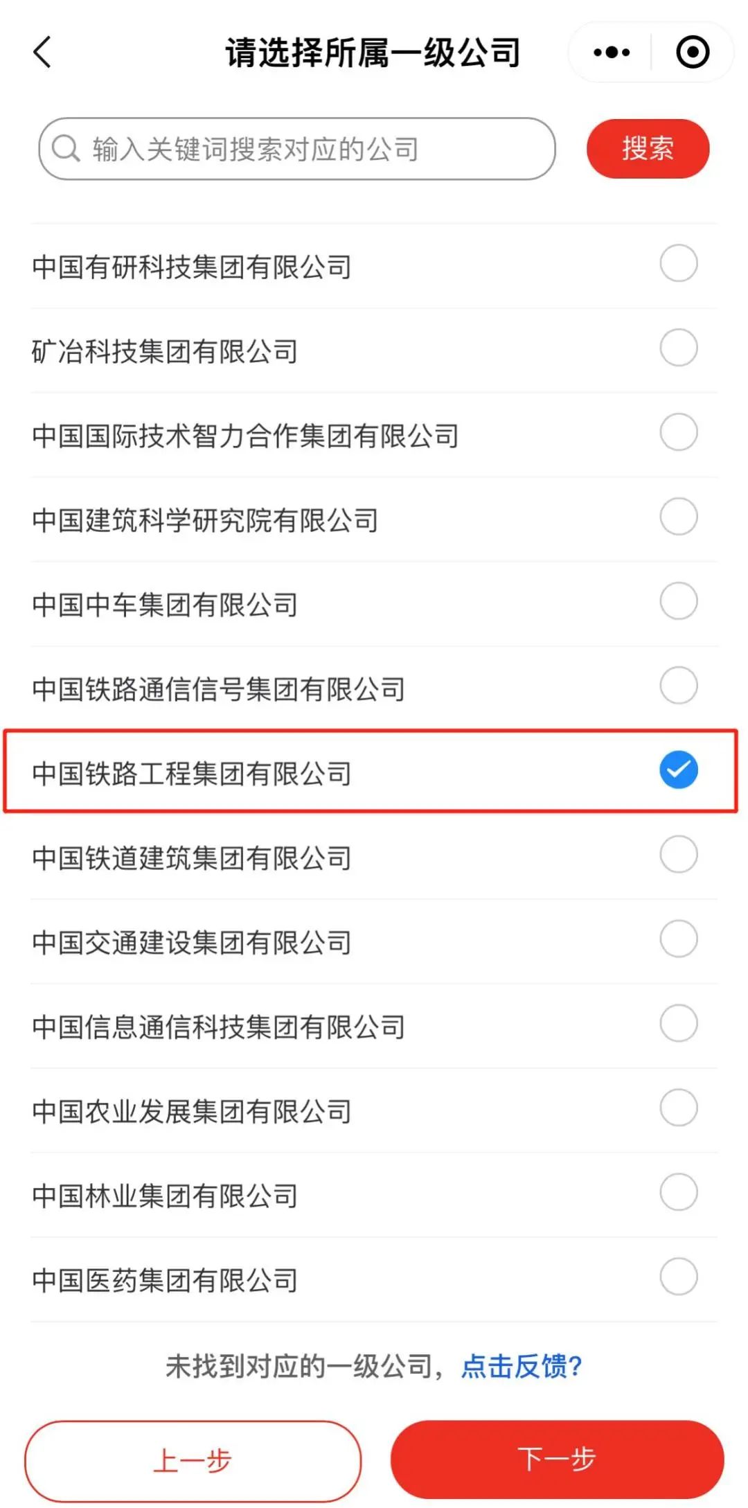 (“个人购角色”请选择“中国铁路工程集团有限公司”,所属二级公司按照实际情况选择)