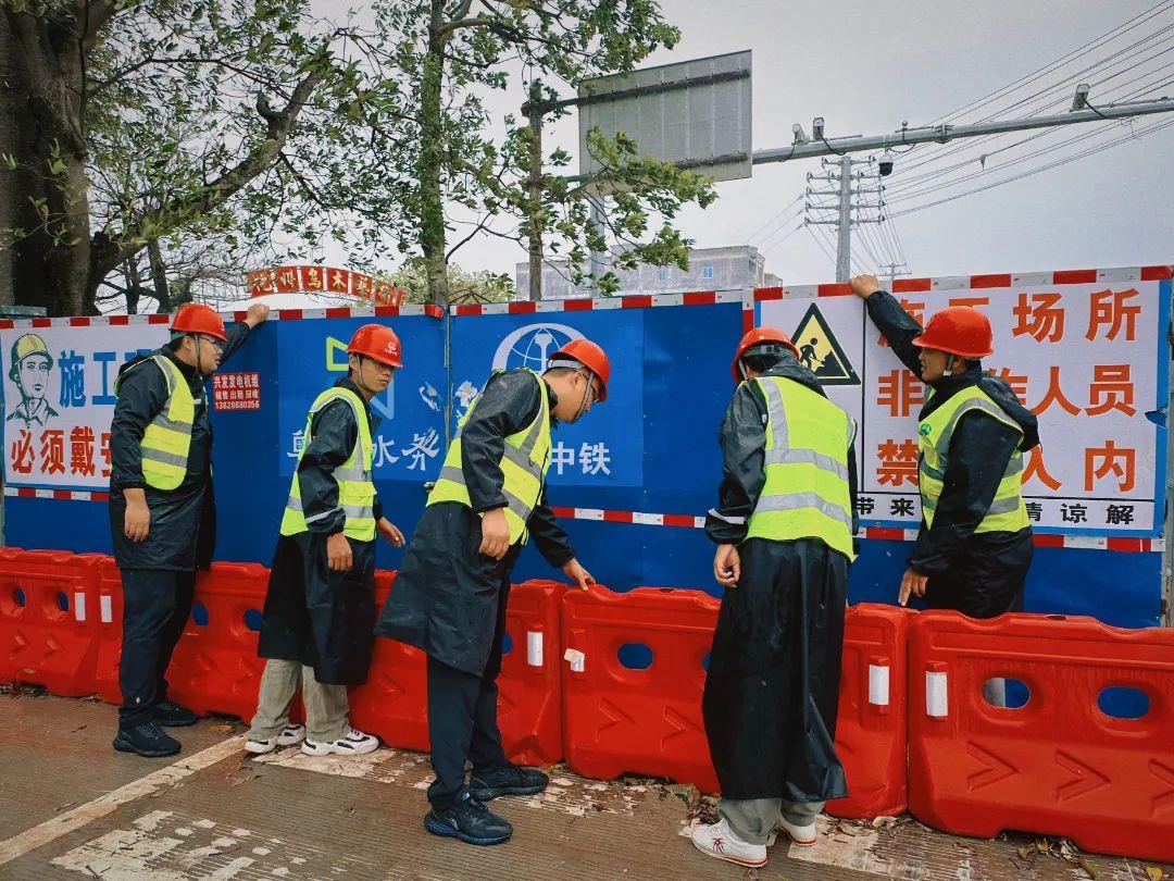 项目部第一时间启动防台防汛预案,全面防御台风“泰利”,确保人员和财产安全。地毯式排查各类风险隐患,检查缆风绳,加固驻地板房、围挡立柱、大型机械等设施,针对重点部位,落实防护措施,并安排值班人员留守,全程关注工地现场动态情况。提前储备抗台风应急物资,确保满足撤离人员的生活需求。