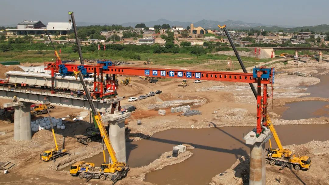 在本次桥梁重建中,中铁六局主要负责上部结构施工,包括运梁、架梁、铺轨等工作。他们第一时间组织附近3个项目部干部职工,迅速成立抢险增援突击队,“党员突击队”“青年先锋岗”等作为先遣人员,连夜奔赴桥梁断交处。