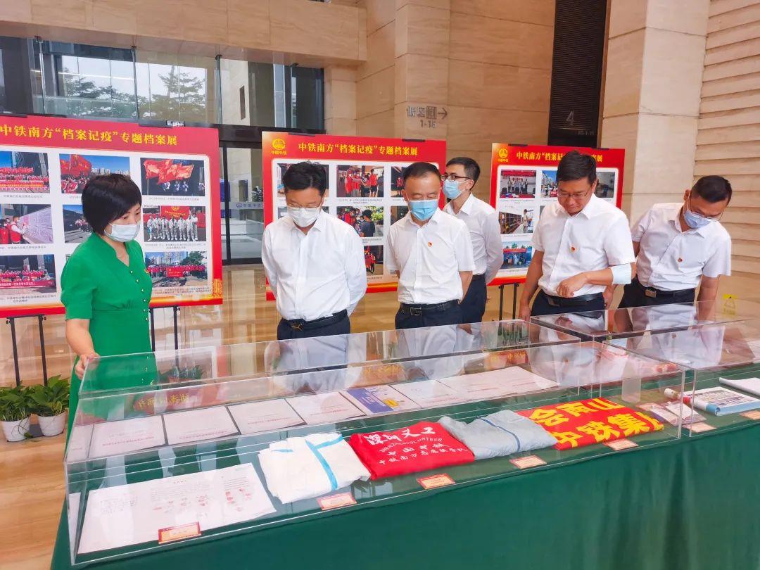 表彰大会召开前,高书记一行还参观了中铁华南区域“档案记疫”实物展览,对中国中铁全体抗疫志愿者弘扬“开路先锋”精神,积极参与抗击疫情志愿服务给予充分肯定。