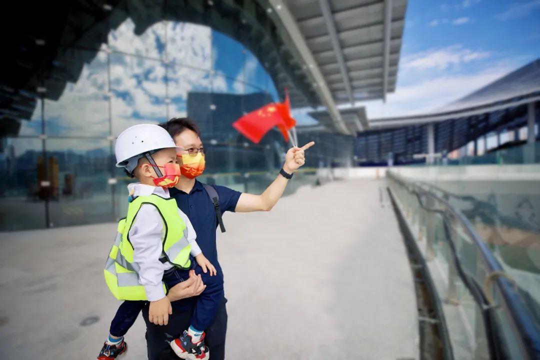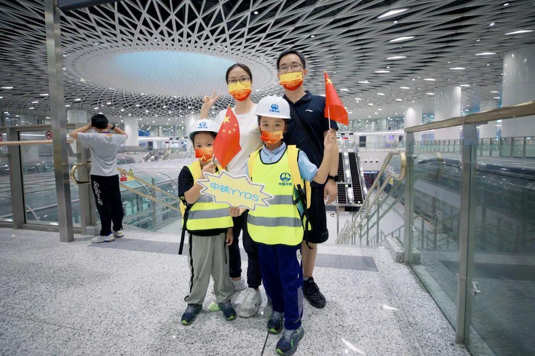 活动中,“小铁人”在爸爸妈妈陪同下、在工作人员引导下,共同乘坐了深圳地铁14号线全自动无人驾驶列车,相继参观了“深圳之眼”岗厦北枢纽、“鹏城之光”黄木岗枢纽、“湾区之舞”大运枢纽。舒适宽敞的乘车环境、便捷贴心的无线充电功能、平稳快速的行车体验,给“小铁人”们留下了深刻的印象,无不为轨道交通现代化、智能化、人性化建设喝彩。而各具特色、极具建筑美学的三大枢纽更是引得大家纷纷夸赞称奇、合影留念,并在公司深圳地铁建设者关于三大枢纽特色及背后建设故事的深情讲述中,切身感受到中国中铁勇于跨越、追求卓越,创新建造现代化轨道交通、服务人民美好出行的初心和使命,身为“小铁人”的自豪感油然而生。