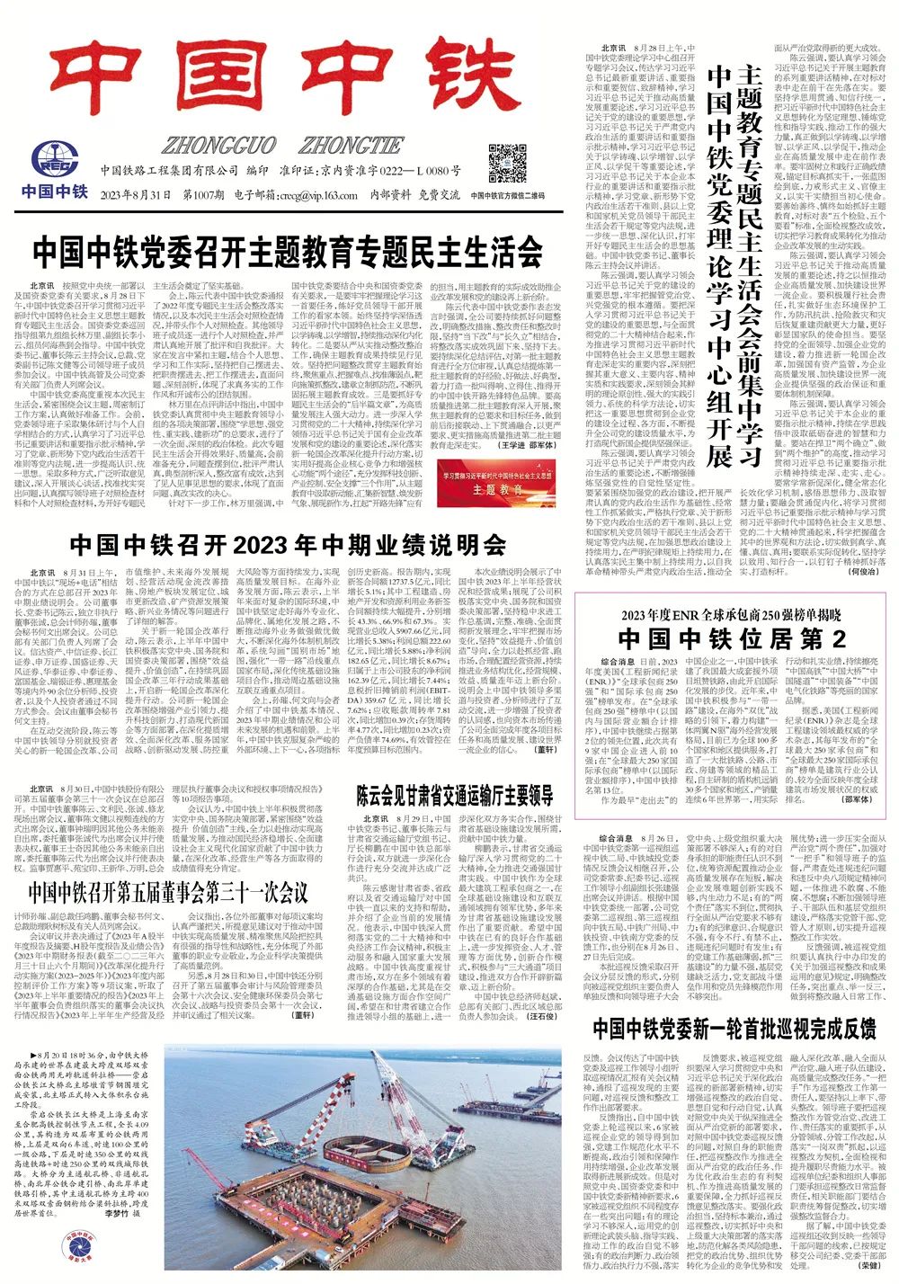了解最新资讯,感知企业脉动。《中国中铁》融媒体报与您相约线上,每周不见不散,欢迎点击文末链接,阅读报纸详情。
