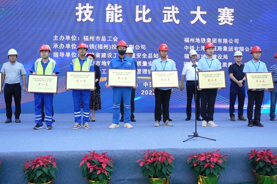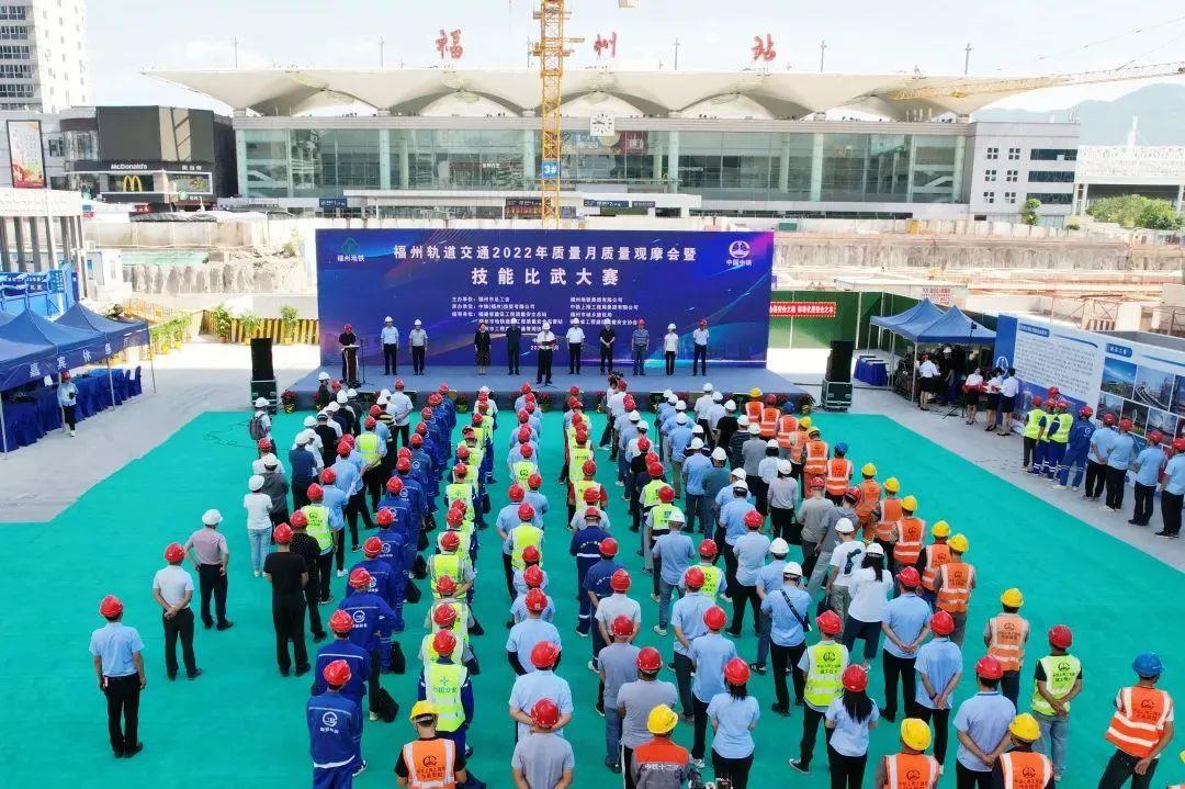 9月14日至15日,在全国第45个“质量月”系列活动火热开展之际,由福州市总会、福州地铁集团有限公司联合主办,中铁南方福州公司、中铁上海局承办的“福州轨道交通2022年质量月观摩会暨技能比武大赛”在滨海快线福州火车站成功举办。来自福州滨海快线、4号线、5号线、2号线东延线、6号线东调段各参建单位80余名一线产业工人同台竞技、一较高下。福州市总工会、福州市城乡建设局、福州地铁集团、中铁南方福州公司、中铁上海局等单位200余人参加活动。