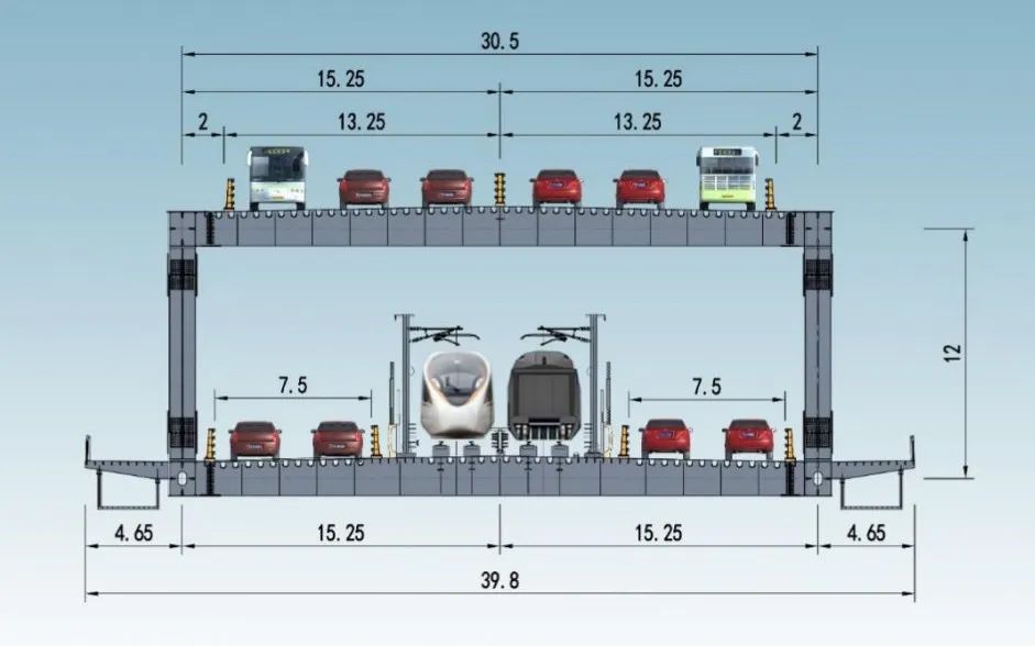 新结构:大桥为上下分层布置,与之适应采用板桁组合新结构。