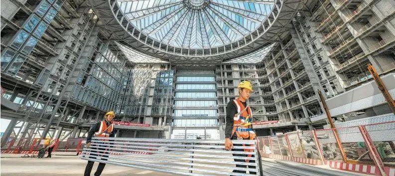 目前,海南银行总部项目已完成结构主体封顶,正在进行二次砌筑、设备管道、幕墙安装精装修等工程,项目总体工程形象进度已完成约70%。