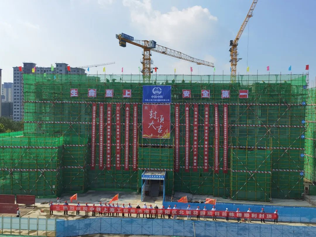 济阳区北城花园项目首栋住宅楼主体结构顺利封顶