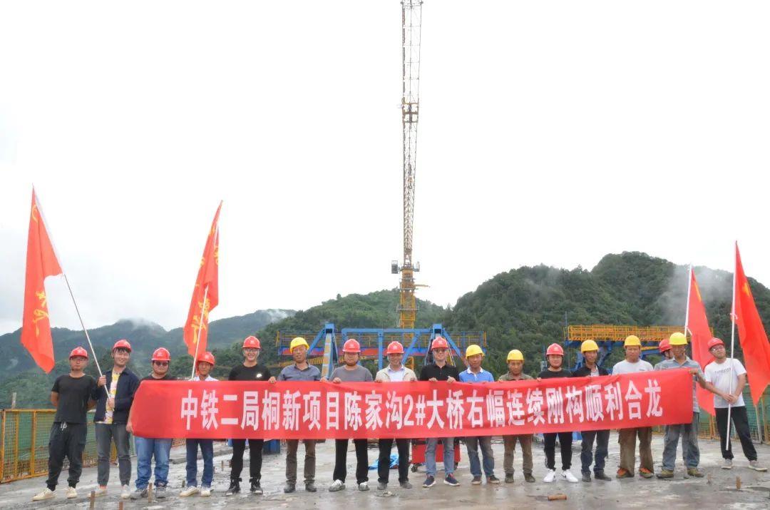 近日,由中铁二局一公司桐新项目承建的陈家沟2#大桥右幅连续刚构桥顺利合龙,比业主计划提前了28天,标志着项目施工建设再次取得重大节点突破。