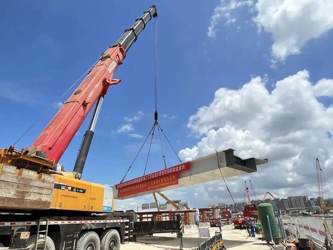 深圳公司妈湾跨海通道项目金港大桥首段箱梁架设成功