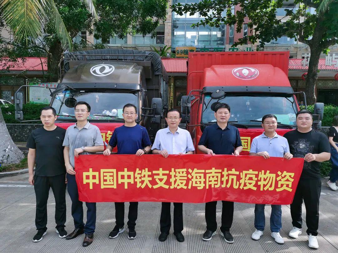 为阻断海南疫情蔓延,中铁南方积极响应地方号召,携手中铁海南区域总部,与区域各单位定点为儋州市筹集近20万元防疫及生活物资,支援儋州抗疫工作。8月16日,三辆满载防疫及生活物资的卡车从海口出发,送抵儋州市。这批物资包括医用口罩、免洗消毒洗手液、护目镜、防护面罩、防护服等防疫物资,以及即食方便面、矿泉水、生态大米等生活物资,通过海南省红十字会定向捐献给儋州市那大镇和湖北流调队。