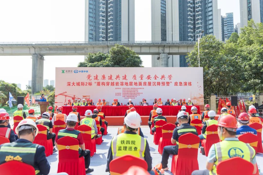 为深入学习贯彻习近平总书记关于安全生产的重要论述和重要指示批示精神,强化全员安全生产意识,提高应急管理水平。3月20日上午,由深圳市政站和深铁集团安全指挥中心指导、深铁投主办、中铁南方和中铁八局承办的“盾构穿越岩溶地层地面房屋沉降预警应急演练”在深大城际2标施工现场举行。