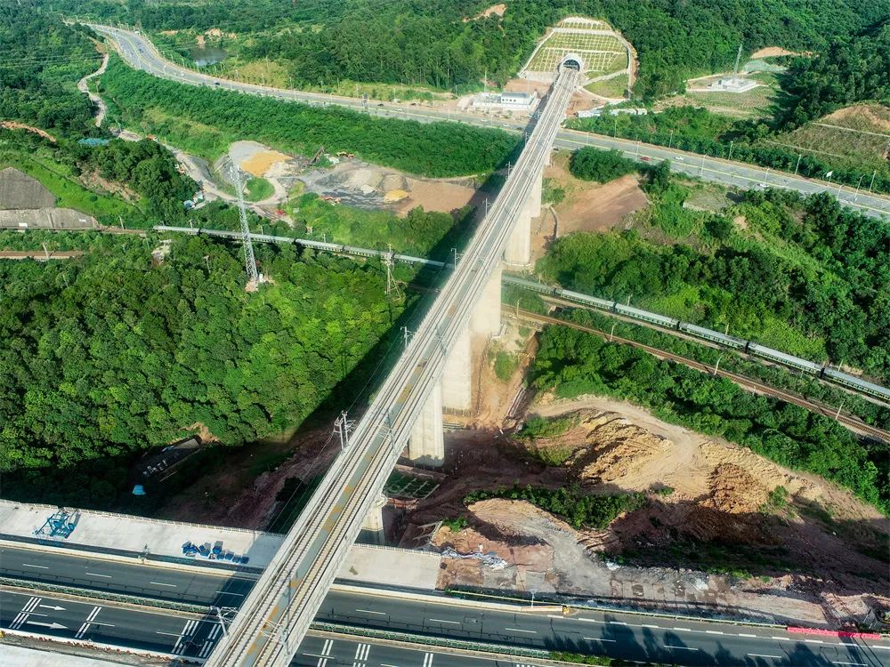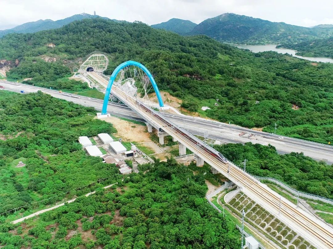 广汕高铁穿越沿海高盐高湿区域,地质环境复杂,建设施工难度较大。2019年全线开工以来,中国中铁各参建单位发扬“开路先锋”精神,克服各种困难,创新工艺工法,匠心打造了新塘站、增城站、增江特大桥、红花嶂隧道等一批精品站房及全线控制性工程,确保了广汕高铁如期建成。